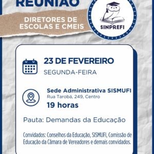 Na próxima segunda-feira (23), o Sinprefi realizará uma reunião com os diretores das escolas e dos CMEIs da rede municipal […]