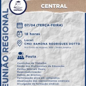 O Sinprefi convoca os profissionais da Educação da região Central para participarem da Reunião Regional, que será realizada: CMEI Ramona […]
