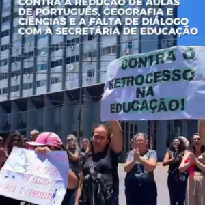 PROFESSORES PROTESTAM CONTRA REDUÇÃO DE AULAS DE PORTUGUÊS, GEOGRAFIA E CIÊNCIAS