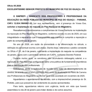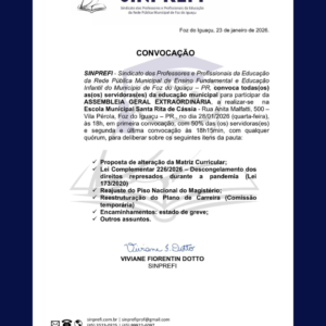 O SINPREFI convoca todas(os) as(os) servidoras(es) da Educação Municipal para participarem da Assembleia Geral Extraordinária. 🗓 28/01/2026 (quarta-feira) ⏰ 18h […]