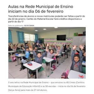 SINPREFI COMPARTILHA: Aulas na Rede Municipal de Ensino iniciam no dia 06 de fevereiro Transferências de alunos e novas matrículas […]