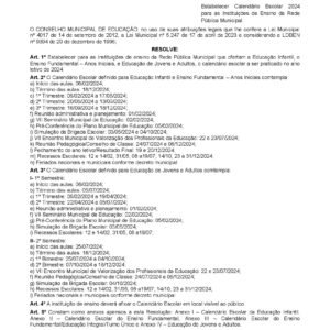 SINPREFI COMPARTILHA: Calendário Escolar 2024 para as Instituições de Ensino da Rede Pública Municipal.