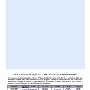 SINPREFI COMPARTILHA: EDITAL Nº 01/2023 SOLICITAÇÕES DE TRANSFERÊNCIAS DOS SERVIDORES DA SMED