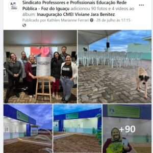CONFIRA AS FOTOS DA INAUGURAÇÃO DO CMEI VIVIANE JARA BENITEZ NO ÁLBUM CRIADO NO FACEBOOK Acesse o link: https://www.facebook.com/sinprefi/posts/pfbid0mcP9AibEHkPfRkn9X2qXc9WJ19C6vU7dSJybTLyiRvjDZys5RATU2QB29pznn4Ful