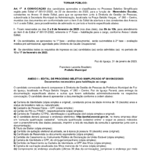 SINPREFI COMPARTILHA: CONVOCAÇÃO DO CARGO DE MERENDEIRO ESCOLAR Apresentação dos documentos constantes no edital devem ser entregues na Secretaria de […]