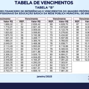 CONFIRA A ATUALIZAÇÃO DA TABELA DE VENCIMENTOS.