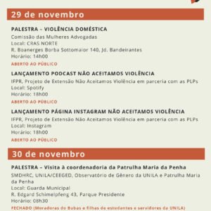 21 DIAS DE ATIVISMO PELO FIM DA VIOLÊNCIA CONTRA AS MULHERES Programações dos dias 29 e 30/11.
