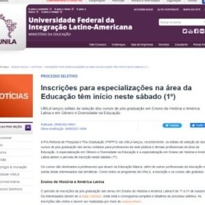 SINPREFI COMPARTILHA: UNILA lançou editais de seleção dos cursos de pós-graduação em Ensino de História e América Latina e em […]