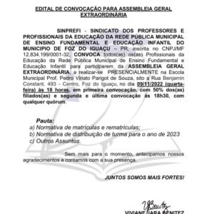 CONVOCAÇÃO ASSEMBLEIA GERAL EXTRAORDINÁRIA PRESENCIALMENTE, na Escola Municipal Prof. Pedro Viriato Parigot de Souza, na Rua Benjamin Constant, 493 – […]