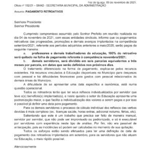 APÓS MUITA INSISTÊNCIA E BUSCAS INCANSÁVEIS PELOS PAGAMENTOS ATRASADOS, ENFIM UMA NOTÍCIA CONCRETA E COERENTE