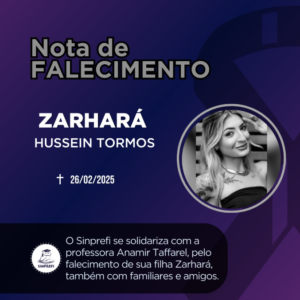 Com imenso pesar manifestamos nossas condolências à professora do município, Anamir Taffarel, pelo falecimento da filha Zarhará Hussein Tormos, ocorrido […]