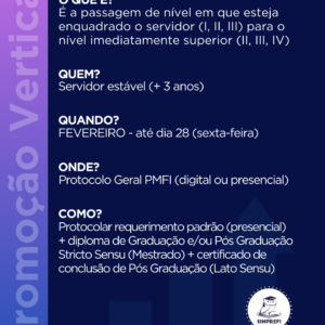⚠ AMANHÃ (28) É O ÚLTIMO DIA PARA PROTOCOLAR OS CERTIFICADOS PARA PROMOÇÃO VERTICAL 🔵 O que é a Promoção […]