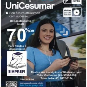SINPREFI COMPARTILHA: Graduação EAD na conveniada do Sinprefi UniCesumar. Filiados ao Sinprefi e dependentes, recebem bolsa de até 70% de […]