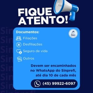 ⚠ Documentos para filiações, desfiliações, solicitação de adesão do seguro de vida e para outras finalidades, devem ser enviados para […]