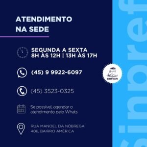 ⏰O atendimento na sede do Sinprefi é de segunda-feira a sexta-feira, das 8h às 12h | das 13h às 17h. […]