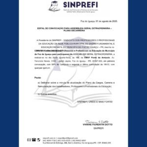 O SINPREFI convoca todos(as) os(as) Professores e Profissionais da Educação do município de Foz do Iguaçu para participarem da Assembleia […]
