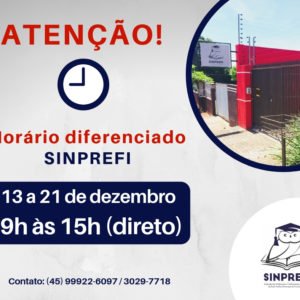 A partir de hoje (13/12), o SINPREFI passa a atender em horário diferenciado. A sede do sindicato estará aberta das […]