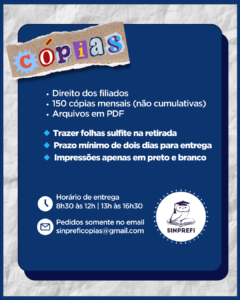📌 São 150 cópias ou impressões por mês para o trabalhador sindicalizado.