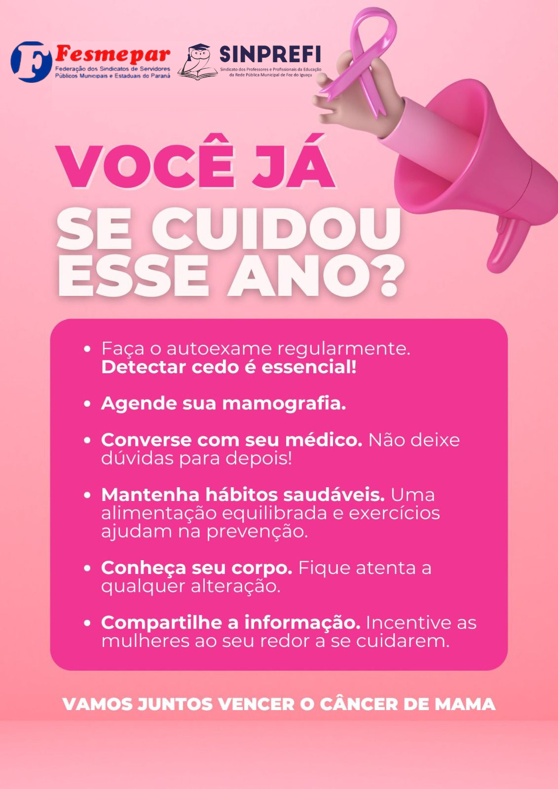 🌸 OUTUBRO ROSA: JUNTOS PELA VIDA DAS MULHERES!