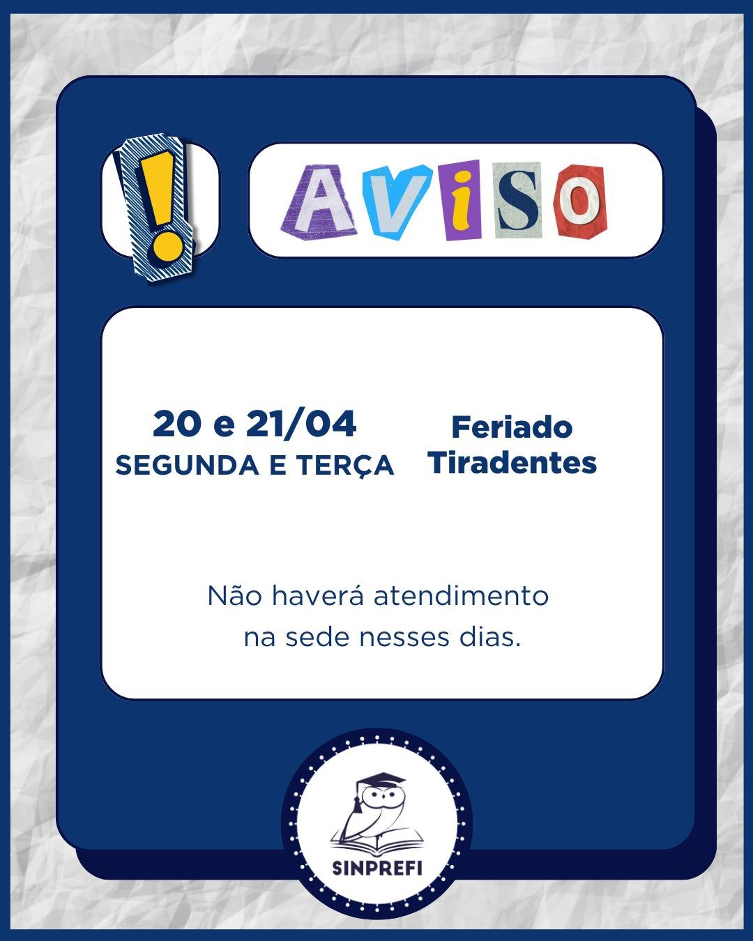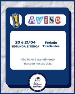 AVISO: DIAS 20 E 21 NÃO HAVERÁ ATENDIMENTO NA SEDE