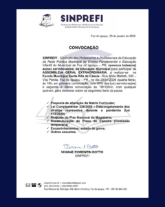 O SINPREFI convoca todas(os) as(os) servidoras(es) da educação municipal para participarem da Assembleia Geral Extraordinária.