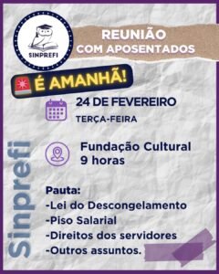 É AMANHÃ! Atenção, aposentados e aposentadas: nesta terça-feira (24) temos um encontro marcado para debater temas fundamentais para a categoria.