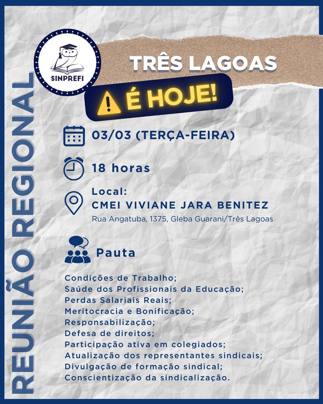 É hoje o nosso encontro regional para dialogar sobre temas essenciais para a categoria