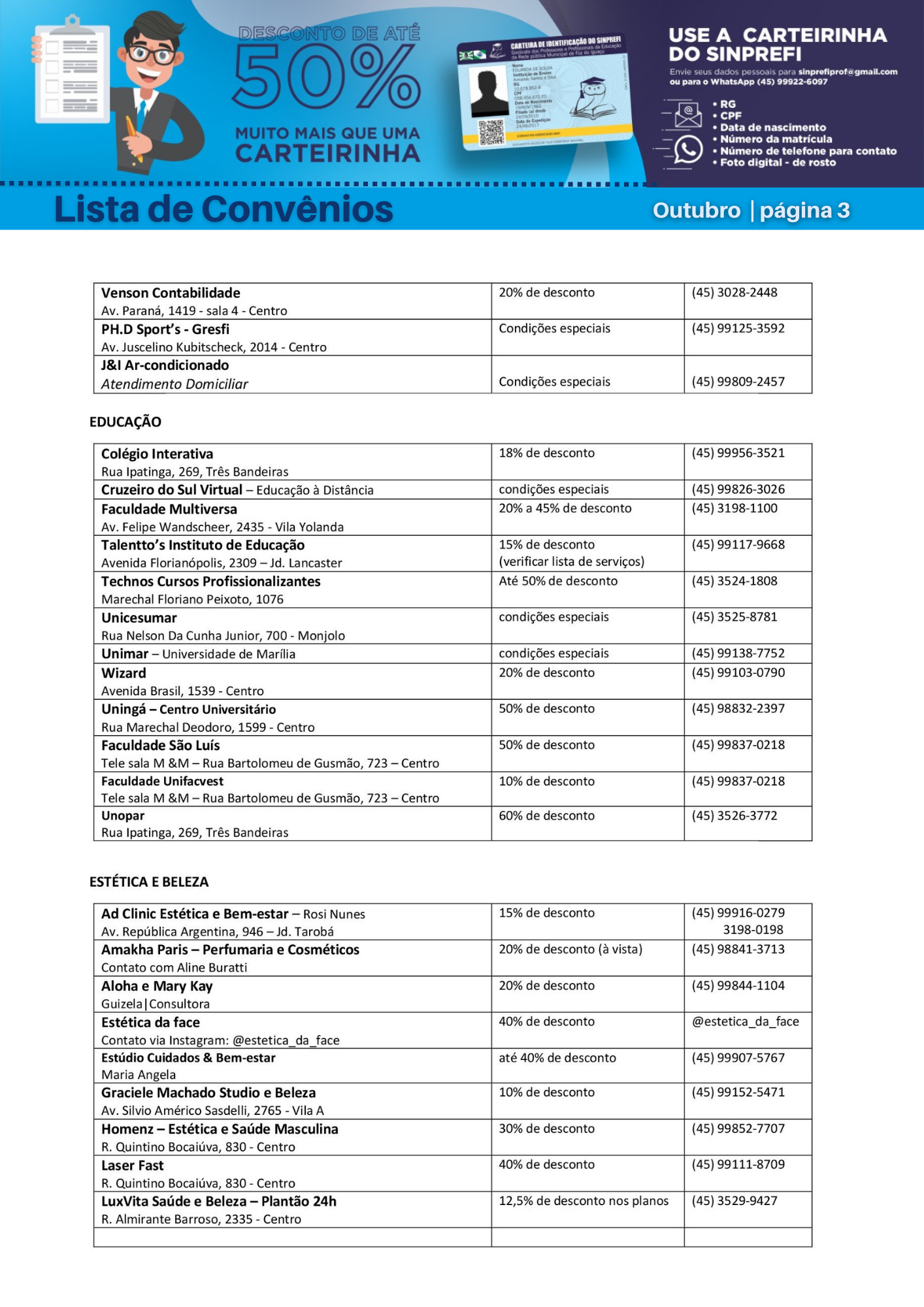 • LISTA DE CONVÊNIO ATUALIZADA!