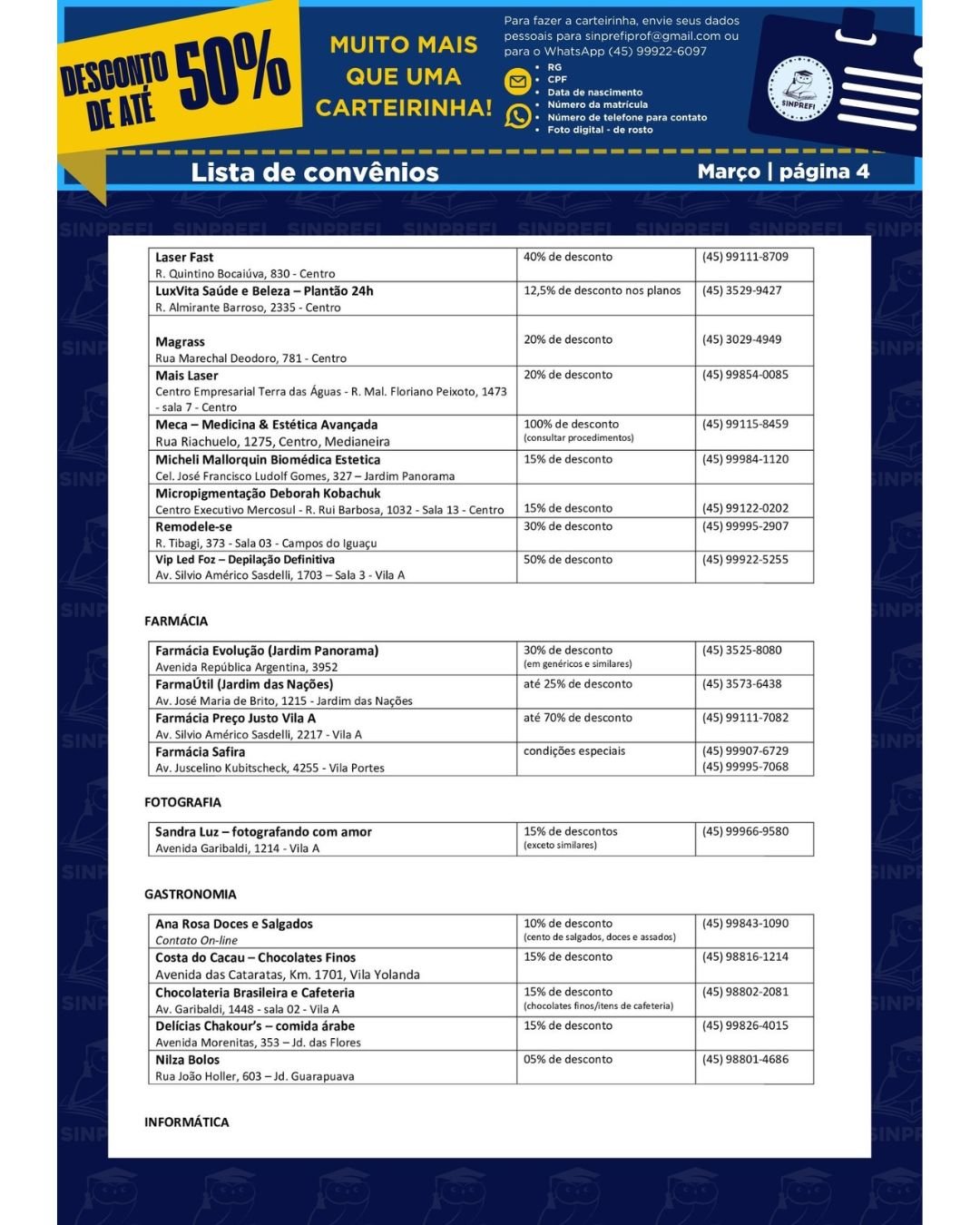 LISTA DE CONVÊNIOS SINPREFI ATUALIZADA