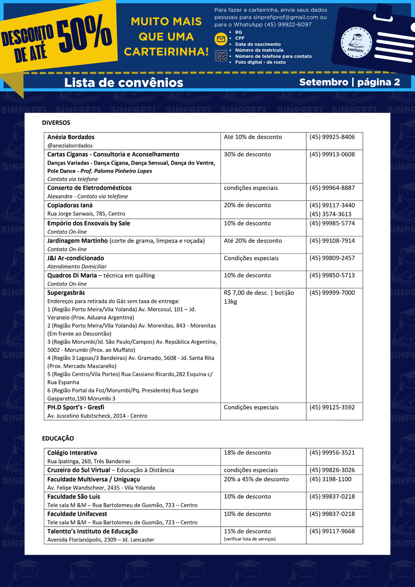 LISTA DE CONVÊNIOS SINPREFI – ATUALIZADA!