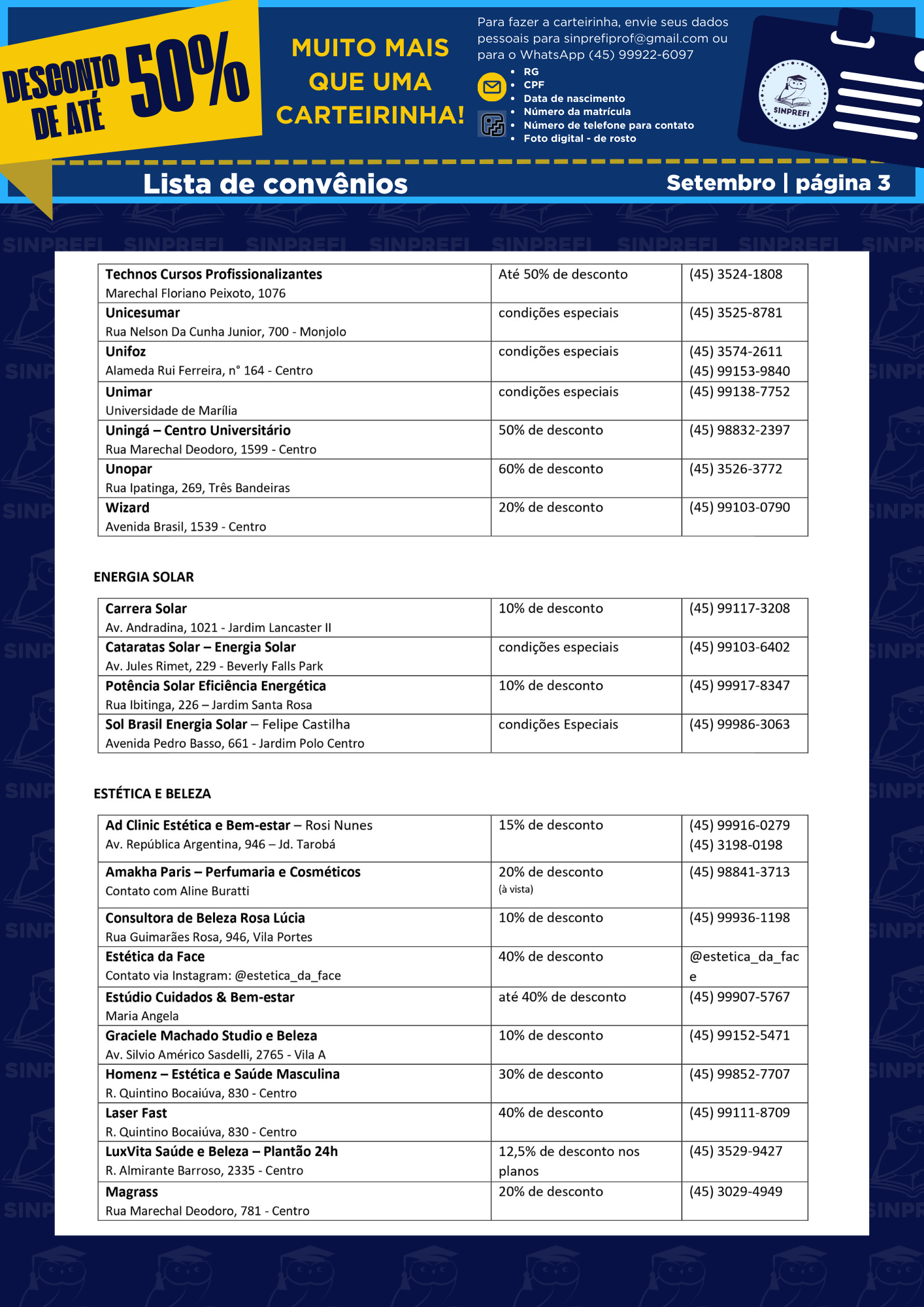 LISTA DE CONVÊNIOS SINPREFI – ATUALIZADA!