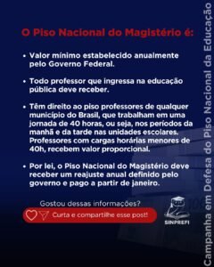 Uma Medida Provisória (MP n° 1334, de 2026) foi estabelecida este ano, alterando a legislação sobre o piso salarial nacional dos professores da educação básica pública, atualizando a fórmula de cálculo do Piso. A nova regra passa a considerar a inflação e a variação da receita do Fundeb, garantindo maior previsibilidade, transparência e valorização para os profissionais do magistério.