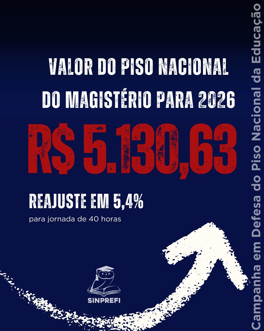 Está definido: o Piso Nacional do Magistério será reajustado em 5,4% em 2026. Com a atualização, o valor mínimo para uma jornada de 40 horas semanais passa a ser R$ 5.130,63.