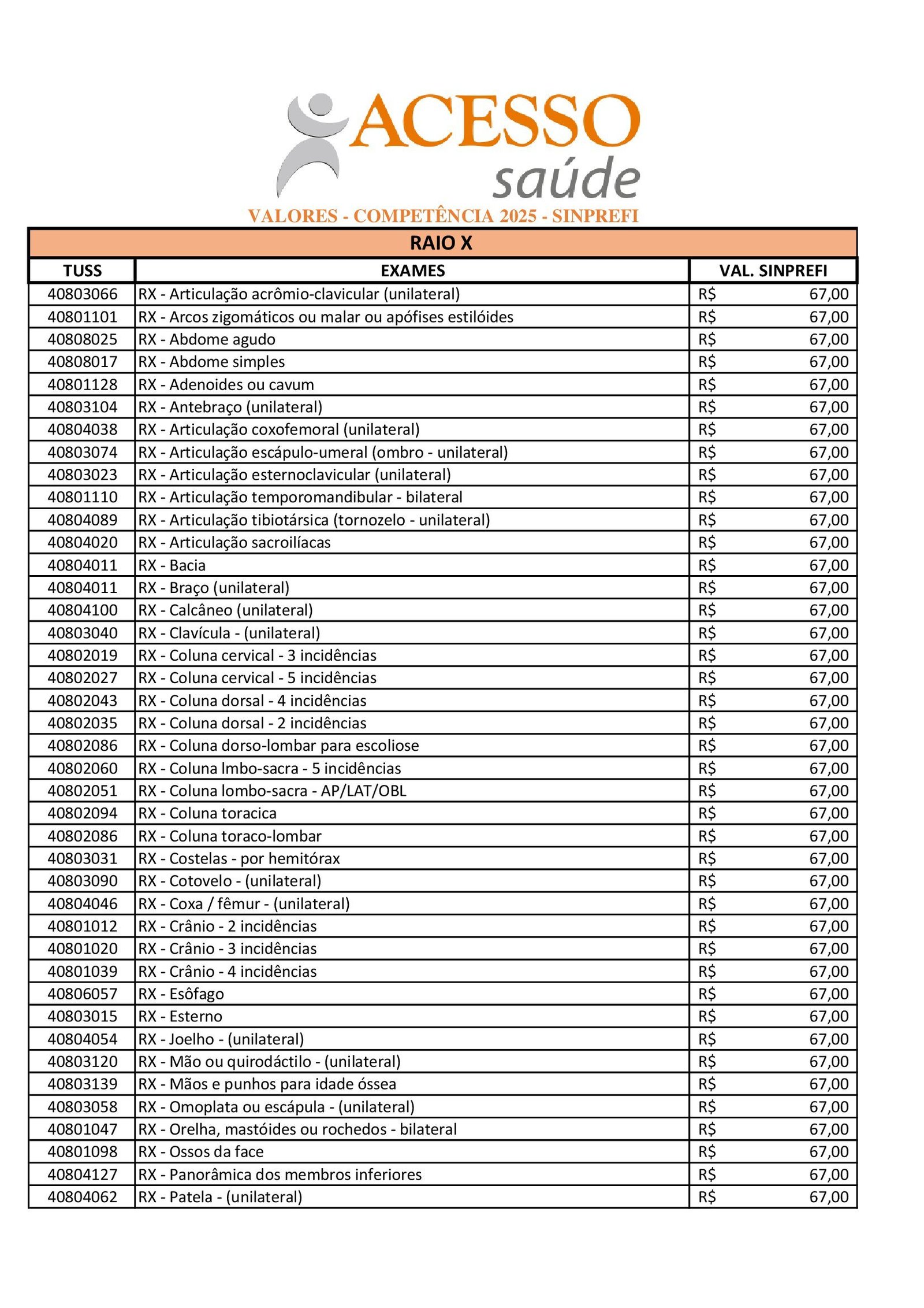 SINPREFI COMPARTILHA: CONVENIADO ACESSO SAÚDE – Reajuste de valores a serem praticados a partir de janeiro de 2025 e seus respectivos procedimentos. 16 de dezembro de 2024 preferir