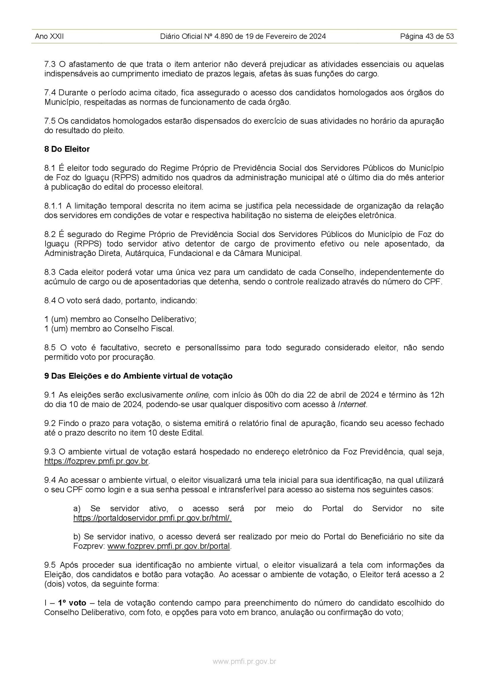 SINPREFI COMPARTILHA: Eleição FozPrev para preenchimento das vagas de membros dos Conselhos Deliberativo e Fiscal da Foz Previdência – FOZPREV, para o mandato de 2024-2028.