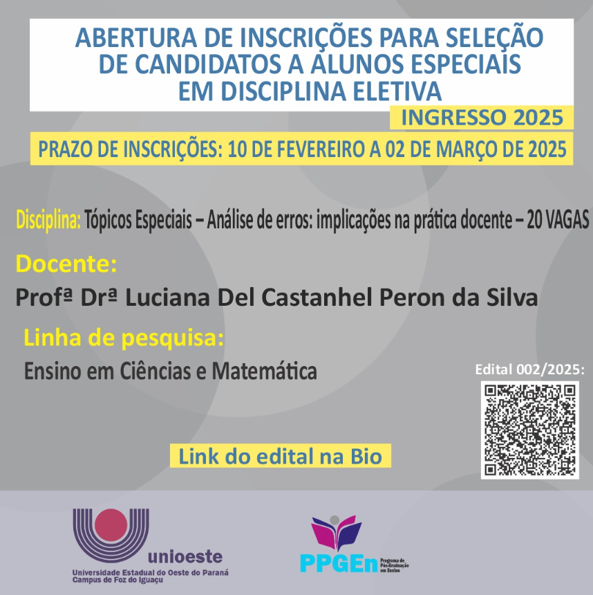 #PPGEn #Unioeste #Ensino #Pesquisa #Mestrado #AlunoEspecial