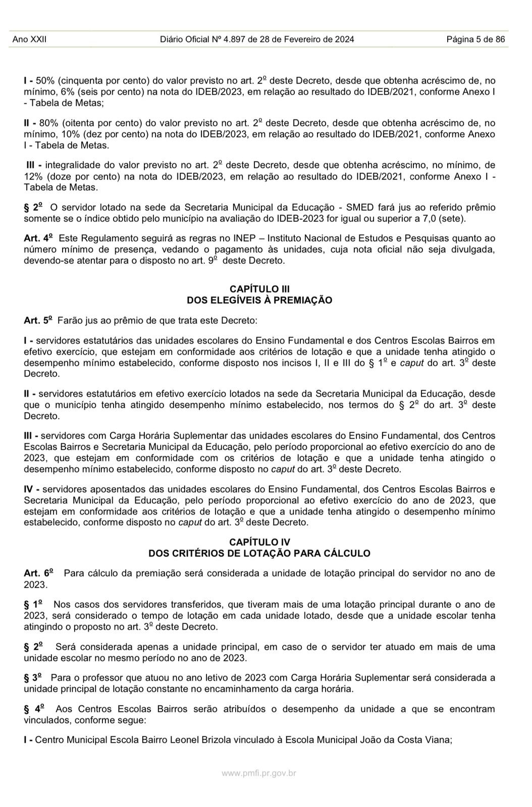 SINPREFI COMPARTILHA: Publicado em Diário Oficial desta quarta-feira (28), o resultado do Ideb 2023 (Acordo de Metas do Programa Gestão para Resultados)
