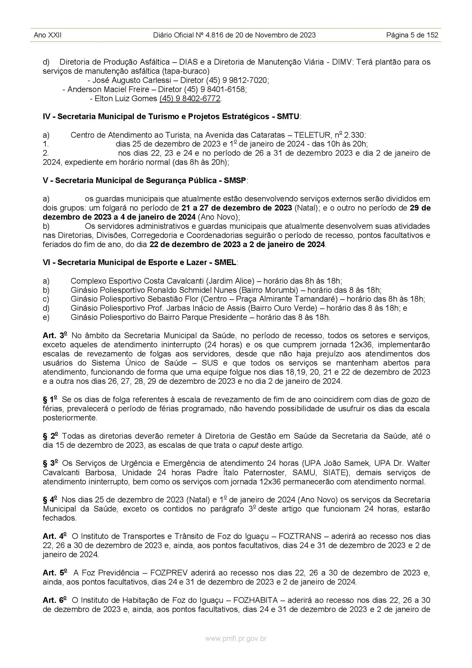 SINPREFI COMPARTILHA: Recesso de final de ano nas Repartições Públicas Municipais de Foz do Iguaçu