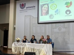 No período da manhã, os participantes acompanharam palestras que destacaram o papel do Sistema de Ensino na elaboração curricular, bem como a necessidade de construção de um currículo próprio, que respeite as especificidades de Foz do Iguaçu enquanto região de fronteira, marcada pela diversidade cultural e pela presença de migrantes e imigrantes.